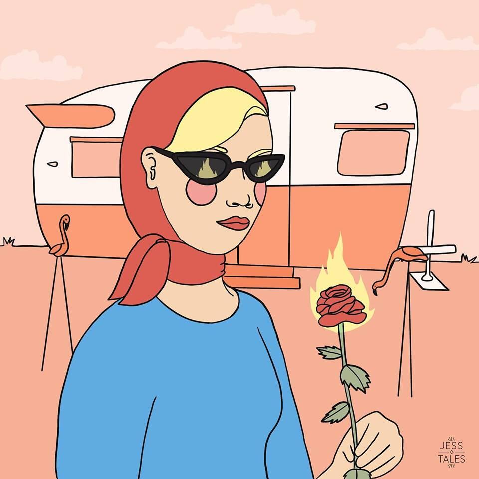 Quesada fundó hace cuatro años su marca Cuatro Ojos, con la que vende camisas, macetas y pequeñas impresiones de sus ilustraciones. Las figuras femeninas y las plantas ilustradas con colores fuertes se han vuelto su sello y en distintas ocasiones ha pintado murales con esas figuras.
