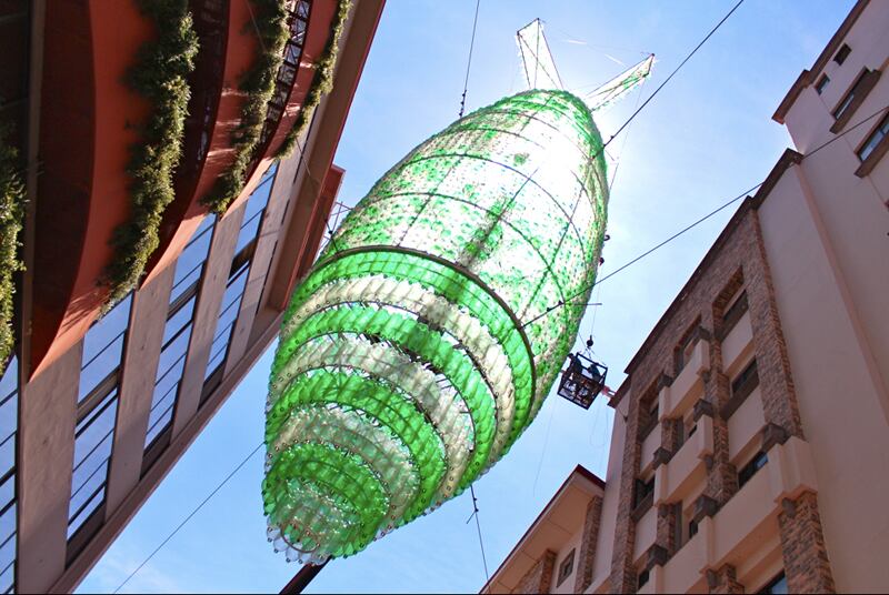 Ciudad tóxica. Un misil inmenso tiñó el cielo de verde. Bélico, directo y polémico: así describe Bracci su pieza hecha con botellas, que se ubicó cerca de la plaza de la Cultura en el 2013. El artista construyó el modelo para una campaña de concientización sobre la contaminación con plástico, elaborada por las organizaciones Preserve Planet y Plastic Pollution Coalition. Con la obra se trató de que el público reflexionase: ¿somos de verdad un país verde?