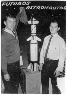 Sueños espaciales. Entre las páginas del libro se puede encontrar una curiosa foto en el Colegio La Salle, donde Chang, junto a su compañero José Gamboa, posan orgullosos al lado de un cohete que construyeron. En la memoria del colegio, escribieron sobre la foto: “futuros astronautas”.