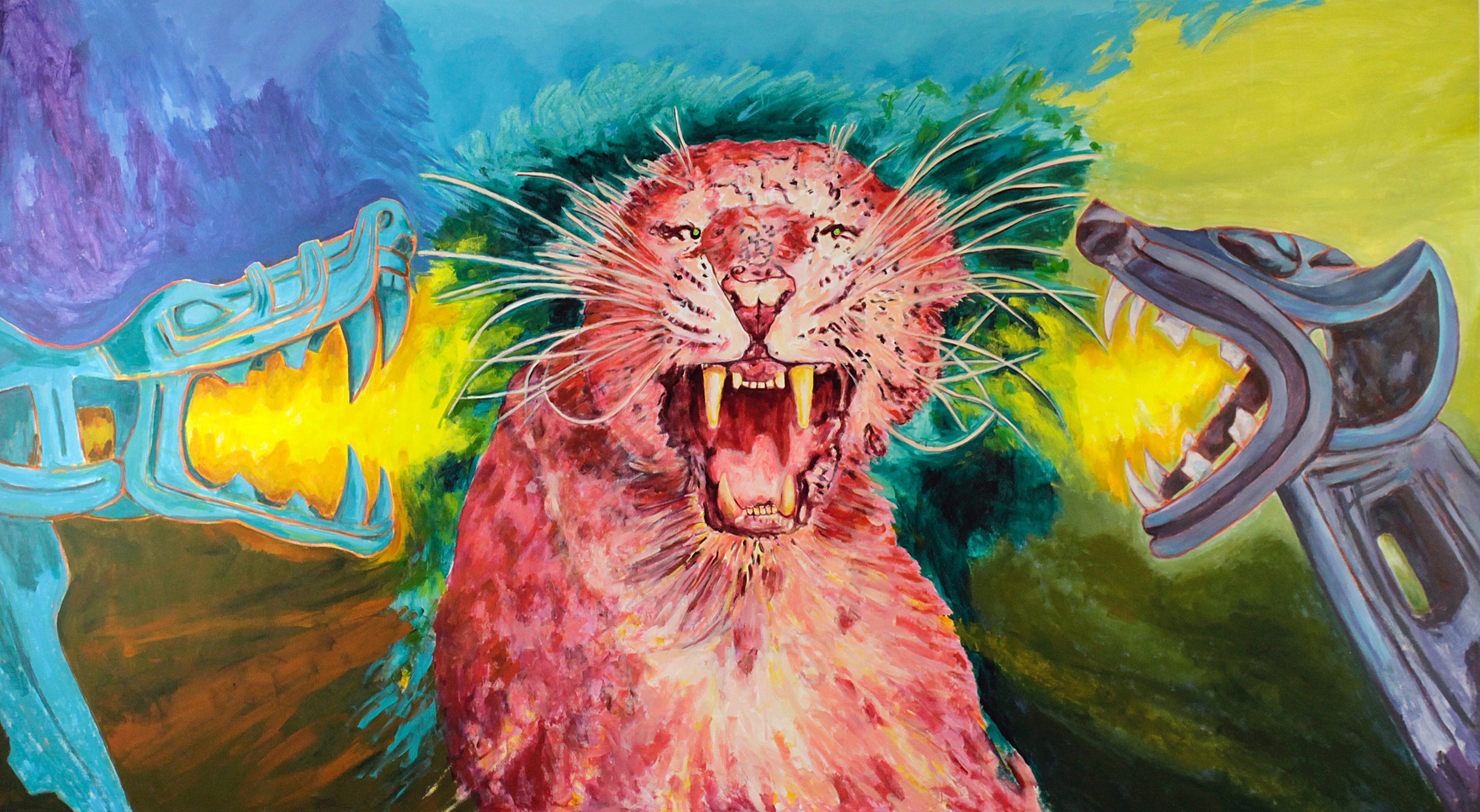 Sepúlveda Bravo trabaja un estilo similar desde hace tres décadas: explora figuras del arte precolombino de Mesoamérica y las mezcla con elementos de la naturaleza. En su obra hay jaguares "realistas" que abren sus grandes fauces junto a representaciones aborígenes del felino.