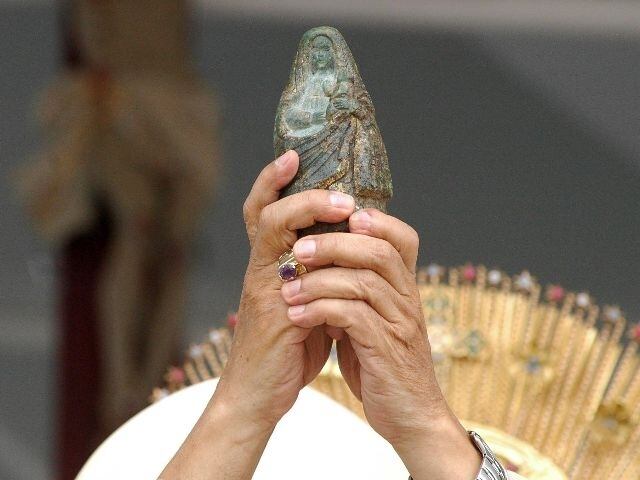 Dos fisuras en la pieza de piedra con la imagen de la Virgen de los Ángeles alertan sobre la fragilidad del material en el que está esculpida la figura de