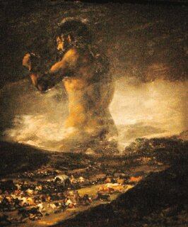 El Coloso , pintado entre 1808 y 1812, muestra a un gigante caminando entre personas que huyen de él despavoridas.