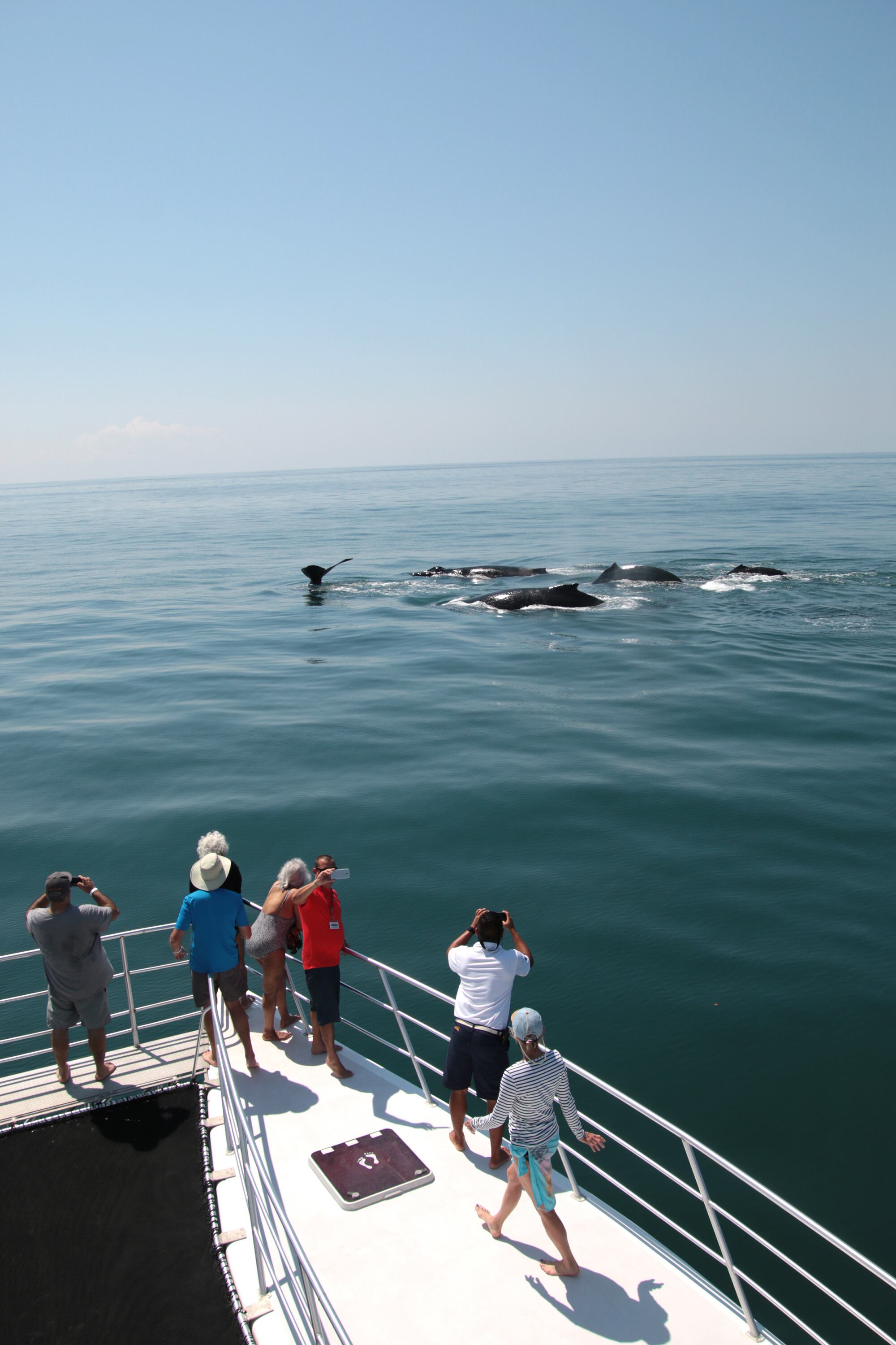 Nuestro embelesamiento es interrumpido súbitamente. Una vez más, el capitán trae noticias y esta vez son buenas para nuestro objetivo: otro de los botes, que hace el mismo tour, ya dio con las primeras ballenas del día y alertó a los demás. Así que hacia ellos nos dirigimos. Esta práctica de avisar a los demás es común, ya que todos los tour operadores quieren que sus clientes se vayan satisfechos.