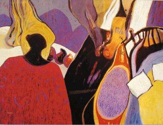 Esta colección de pinturas se caracteriza por la explosión de color en la que resaltan amarillos, rojos, cafés y azules.