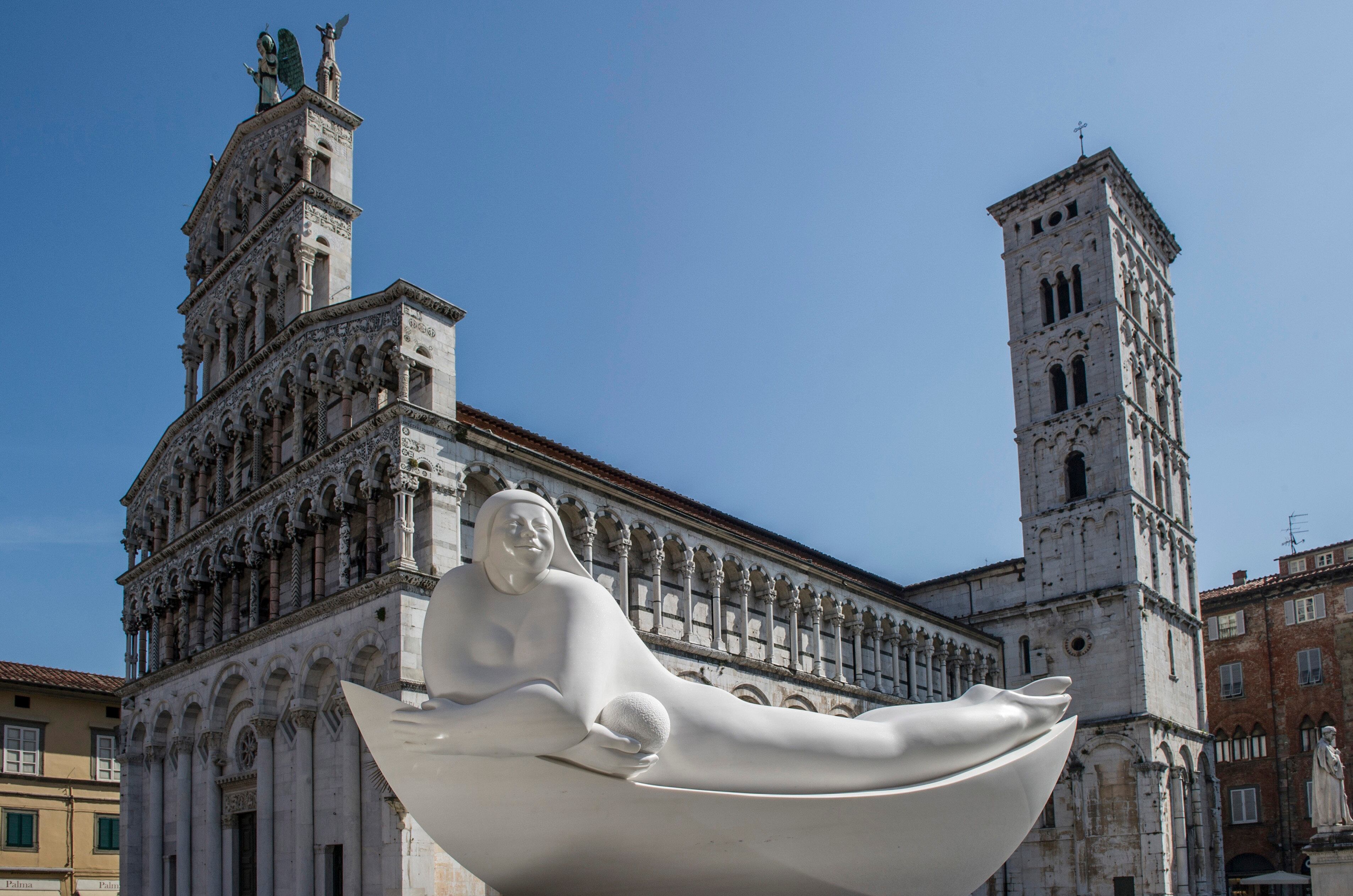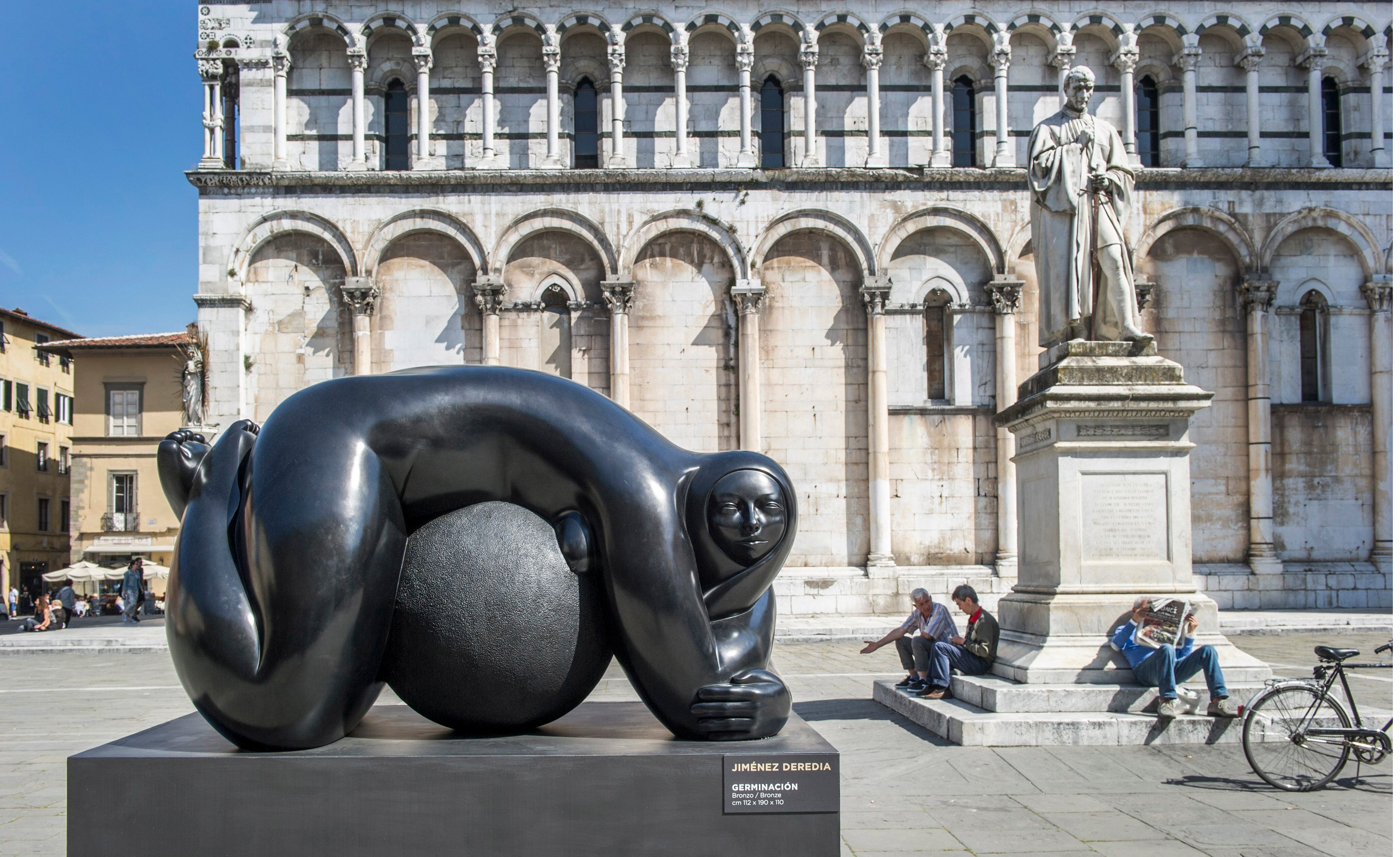 Deredia planeó un despliegue de obras al aire libre a lo largo del casco viejo de Lucca, con esculturas de bronce y mármol.