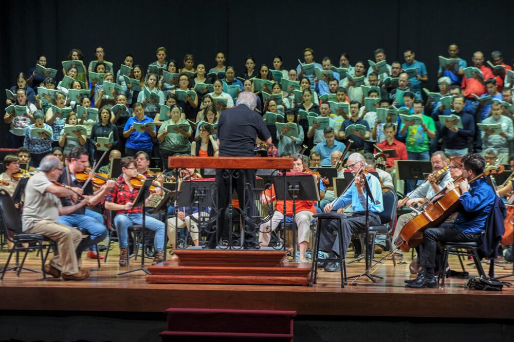 “Yo les debo explicar todo esto porque la pieza es muy demandante. Es muy difícil para el coro y la orquesta. Los músicos deben entender que Beethoven estaba luchando. De hecho, el primer ensayo no fue tan bueno, pero cuando comenzaron a entender la obra todo se volvió más natural y confortable. Por esa razón digo que la Orquesta Nacional es la mejor en Centroamérica. Estoy muy orgulloso de ellos. También uno podría pensar que se necesitan 200 voces para que el coro suene bien, pero tenemos 80 coristas que están haciendo algo fantástico”.