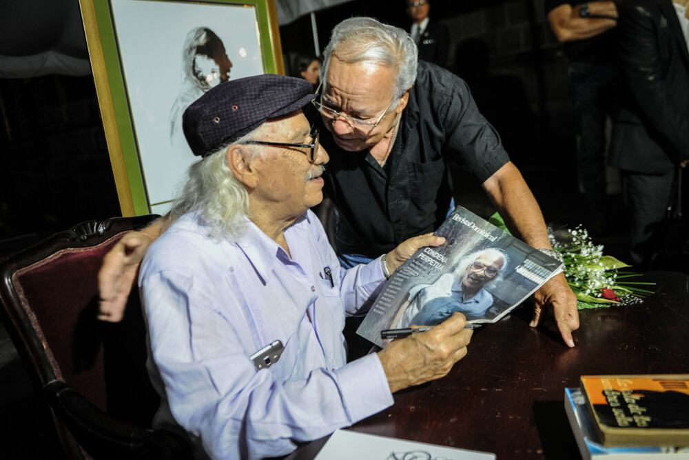 “Hoy está aquí Carlos Cortés y su señora y el señor José Daniel Corrales, quienes están tratando que me den el Premio Magón. Gracias por eso que están haciendo, por ese movimiento por el que probablemente sí me van a dar el Premio Magón el año entrante”, se refirió el autor directamente a su colega, el escritor Carlos Cortés y a José Daniel Corrales, un investigador que trabajó con Sánchez durante la última década para producir su último libro Los nudos del diablo.