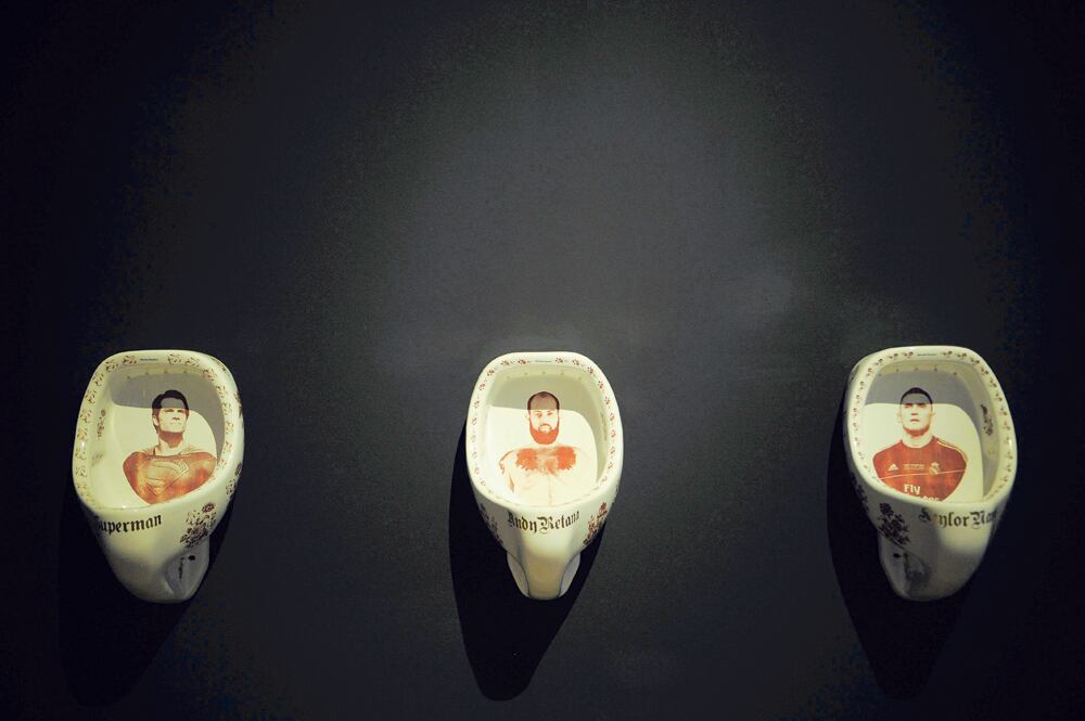 Con una estética kitsch , Andy Retana reflexiona acerca de la masculinidad en tres orinales. Estampa las imágenes de dos hombres que son arquetipos: Superman en Estados Unidos, donde vivió muchos años, y Keylor Navas, en Costa Rica. En medio, su propia imagen.