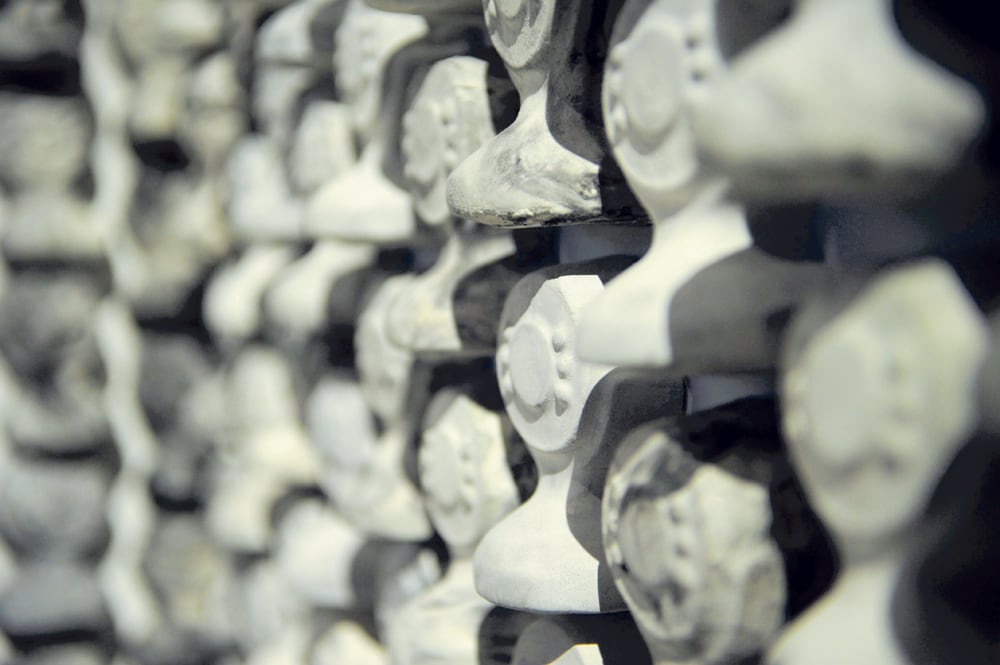 Se ingresa por un pasillo con las más de 1.300 cámaras web de yeso de Albertine Stahl, en la obra El año de la cámara digital para retratos personales .