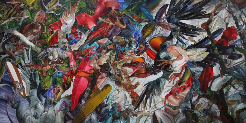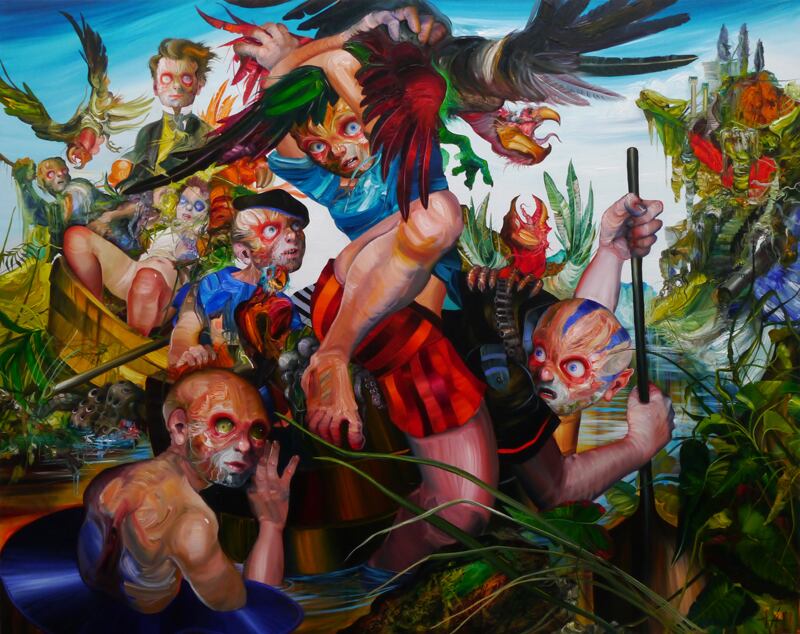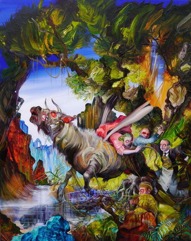 Carranza (Lima, 1981) es uno de los más renovadores artistas de la pintura hispanoamericana. En él confluyen el surrealismo presurrealista del Bosco, los cuerpos-voluta de Rubens, las salvajes selvas de Henri Rousseau, los monstruosos comics de Dave Elliott, la disección científica de muertos, los grafitis callejeros y el caluroso colorido publicitario.