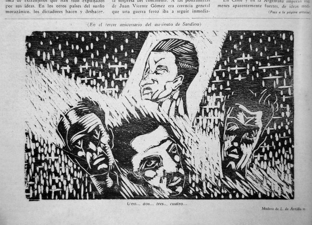 También mostró cuatro obras, en la sección de Artes Decorativas, junto a Salarrué y a otros compatriotas. Tenían una fuerte posición indigenista y social, que era la política cultural del Martinato (la dictadura de Maximiliano Hernández Martínez), gobierno salvadoreño que Costa Rica no reconocía.