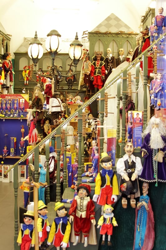 Con ello logré captar lo que quería: una mezcla de colores y texturas que daba como resultado una multitud de marionetas, todas colocadas en los diferentes espacios de la tienda: paredes, estantes, barandas de las escaleras... y hasta en las lámparas. No había espacios vacíos pues cada milímetro era utilizado para colocar desde un Drácula hasta un Messi en versión de marioneta.