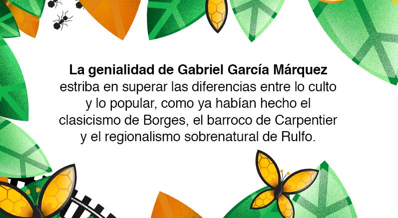 Si bien el narrador colombiano es único e irrepetible al mismo tiempo es el resultado de la paulatina consolidación de la literatura latinoamericana y no puede reducírsele tan solo a la cultura popular. Su genialidad estriba en superar las diferencias entre lo culto y lo popular, como ya habían hecho el clasicismo de Borges, el barroco de Carpentier y el regionalismo sobrenatural de Rulfo.