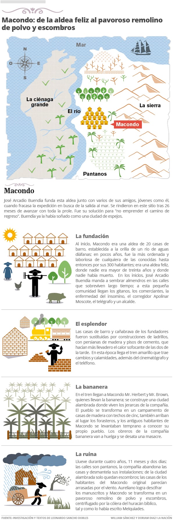 Si bien cristaliza un proceso de autoafirmación de la épica americana, iniciado por Los de abajo (1915), de Mariano Azuela, y Doña Bárbara (1929), de Rómulo Gallegos, la saga de Macondo parece borrar todo lo anterior para fundarse en sí misma, como si estuviera escrita en otro idioma, el suyo propio, o la literatura misma principiara con ese memorable comienzo de comienzos: “Muchos años después, frente al pelotón de fusilamiento…”, que proviene del había una vez de la tradición oral.