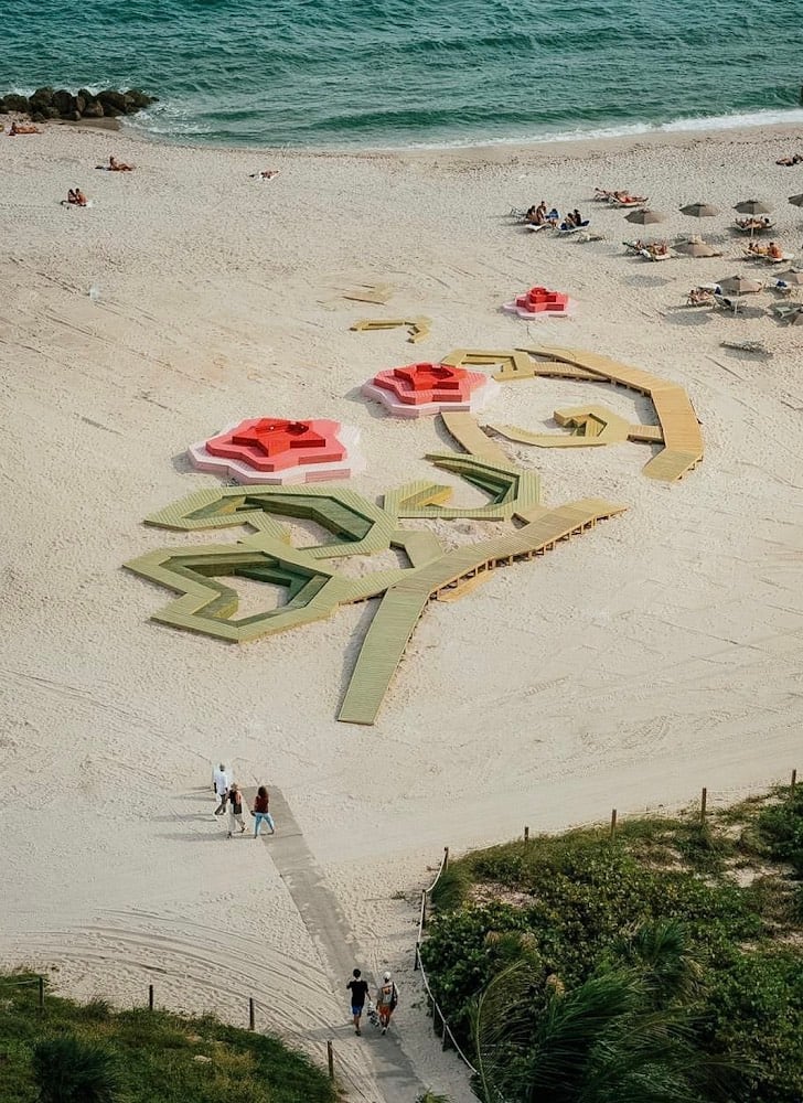 Rodeada de arena, de mar y de edificios de inspiración Art Deco, en otra zona de la playa se alojó una instalación que tiene como fin acercar a las personas al arte. En el marco del Miami Art Week, Faene Art presenta Morning Glory, de la artista Paula de Solminihac, quien creó en la zona una muestra interactiva de flores gigantes de madera que invitan “al mundo humano y al natural a conectar”.
