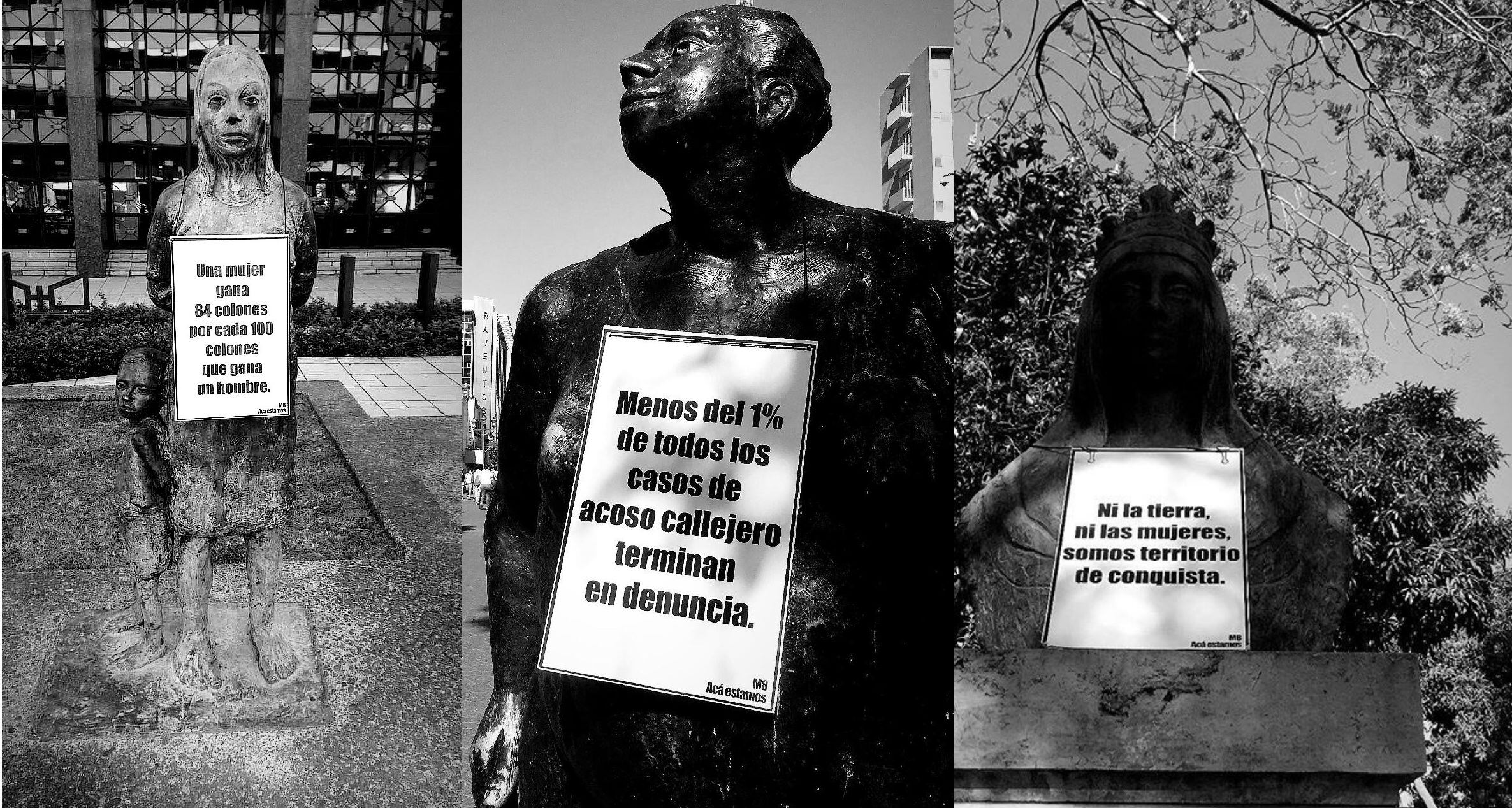 Las artistas se identificaron como "un grupo de mujeres creativas organizadas" y compartieron sus intervenciones en la cuenta de Instagram AcaestamosCR.