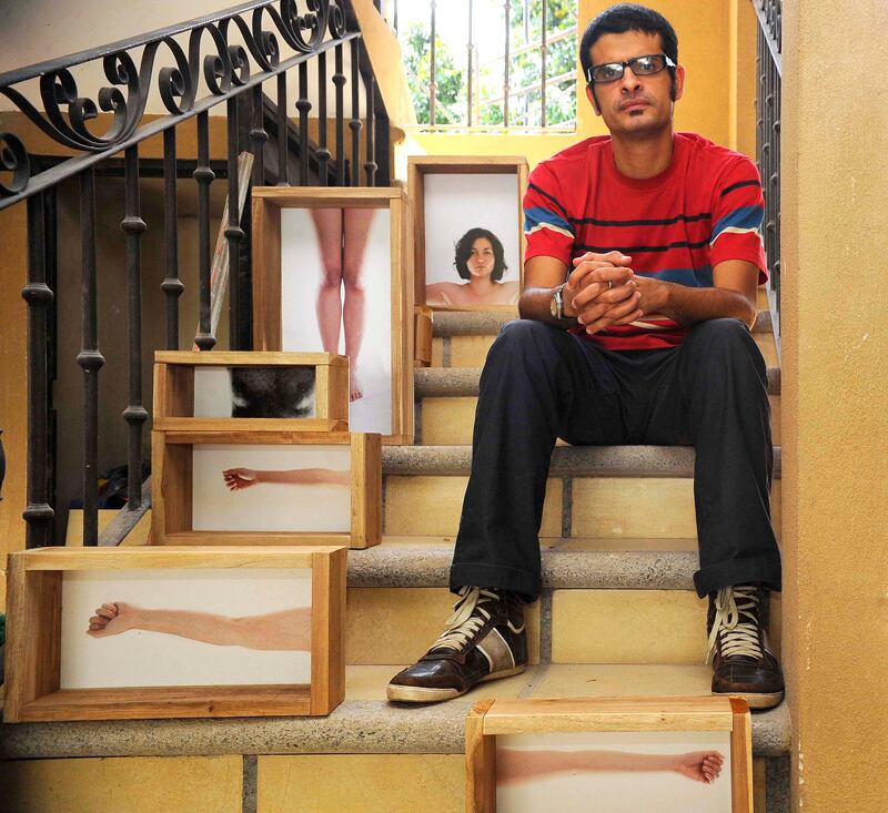 Doble. Guillermo Barquero posa junto a piezas de una instalación fotográfica de su autoría. Gesline Anrango. (Gesline Anrango)