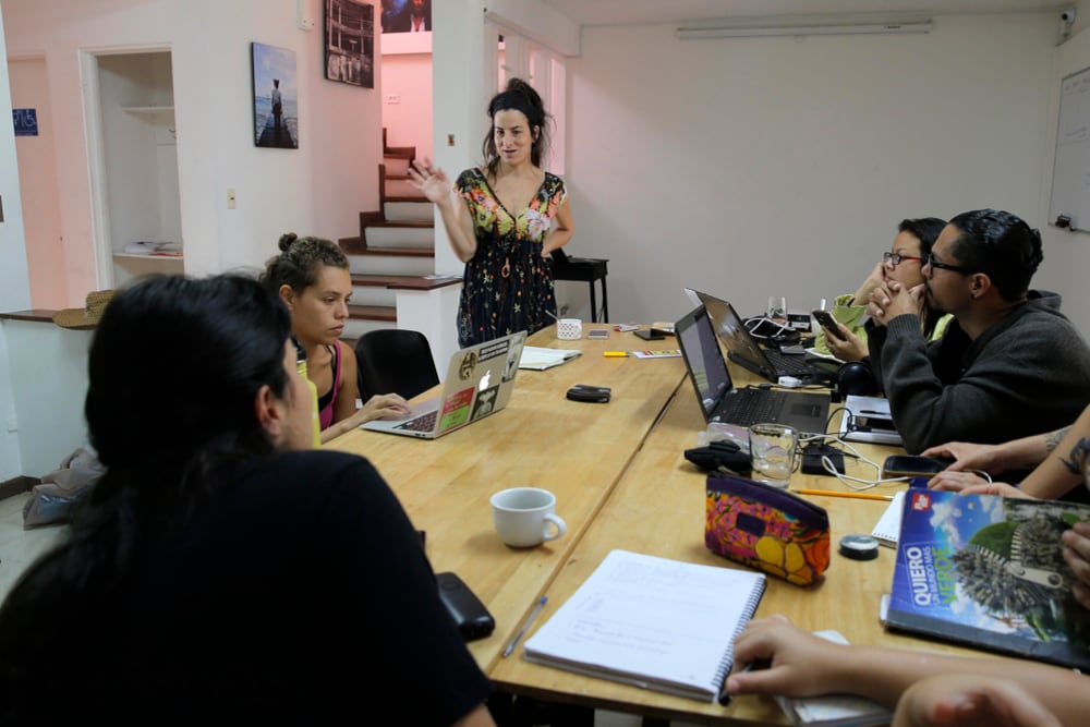”Cuando se presentaron, dijeron mil etiquetas, así que vamos a repensar críticamente esas etiquetas, porque siempre se quedan cortas, la singularidad de uno va más allá de eso. El tercer ejercicio era reconocer los privilegios que tenemos cada uno, ser claro y consciente de eso, y usarlos para hacer un proyecto y subvertir algo. A partir de esos ejercicios hemos estado trabajando. Eso ha creado bastante shock en el sentido de crisis y de ser muy honesto con uno mismo. Varios decían que no podían dormir, machacándose por las noches; uno no ha vuelto al taller, dijo que prefería seguir pensando. Ese era uno de mis objetivos: repensarnos a nosotros mismos. El arte político habla mucho de los otros, de otras comunidades”.