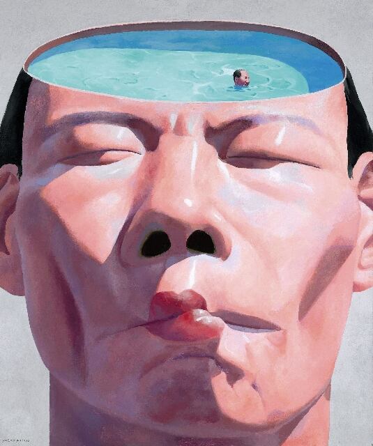 Cuando uno piensa en el trabajo de Minjun (Daqing, 1962), lo primero que le viene a la mente es el color azul celeste, seguido de curiosos autorretratos, de ojos cerrados y sonrisas gigantes que casi desfiguran su cara, en una estampa surrealista a todo color.