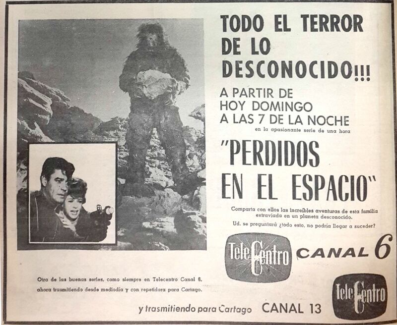 El domingo 12 de junio de 1966, Telecentro Canal 6 anunció para las 7 de la noche la presentación del primer capítulo de Perdidos en el espacio .
