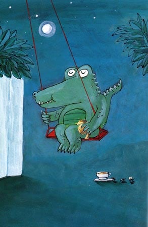 Con su reapertura, Libros Duluoz contiene una nutrida selección de cuentos para niños, entre los que destaca ¿Qué hace un cocodrilo por la noche?, una linda fábula de Kathrin Kiss y Emilio Urberuaga. Cuenta la historia de una niña que descubre a un solitario cocodrilo que se columpia en medio de un parque y de allí brota una bella amistad.