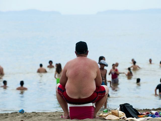 Un tico contempla el mar y toma el sol en la ciudad de Puntarenas ; otros, al fondo, disfrutan del océano en familia. | JULIANA BARQUERO (Juliana Barquero A.)