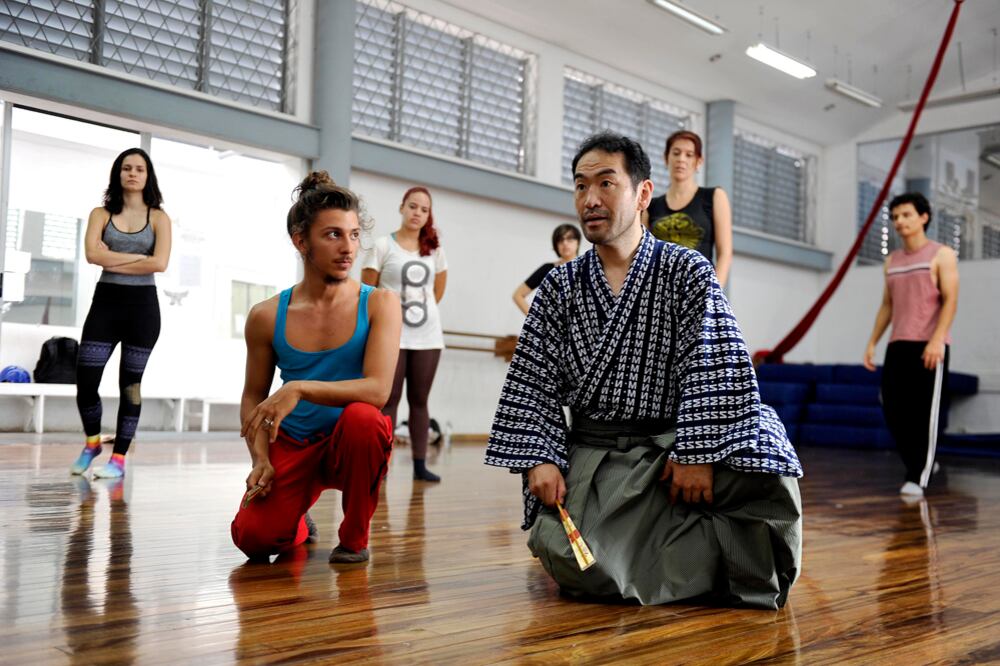 La mañana del miércoles 17 de agosto, el taller de teatro kyogen a cargo del maestro Hiroharu Fukata comenzó con todos los estudiantes de cuclillas, limpiando el piso de madera del Taller Nacional de Danza en barrio Escalante. Fukata tomó un trapo para dejar la superficie lo más limpia y pulida que fuera posible.