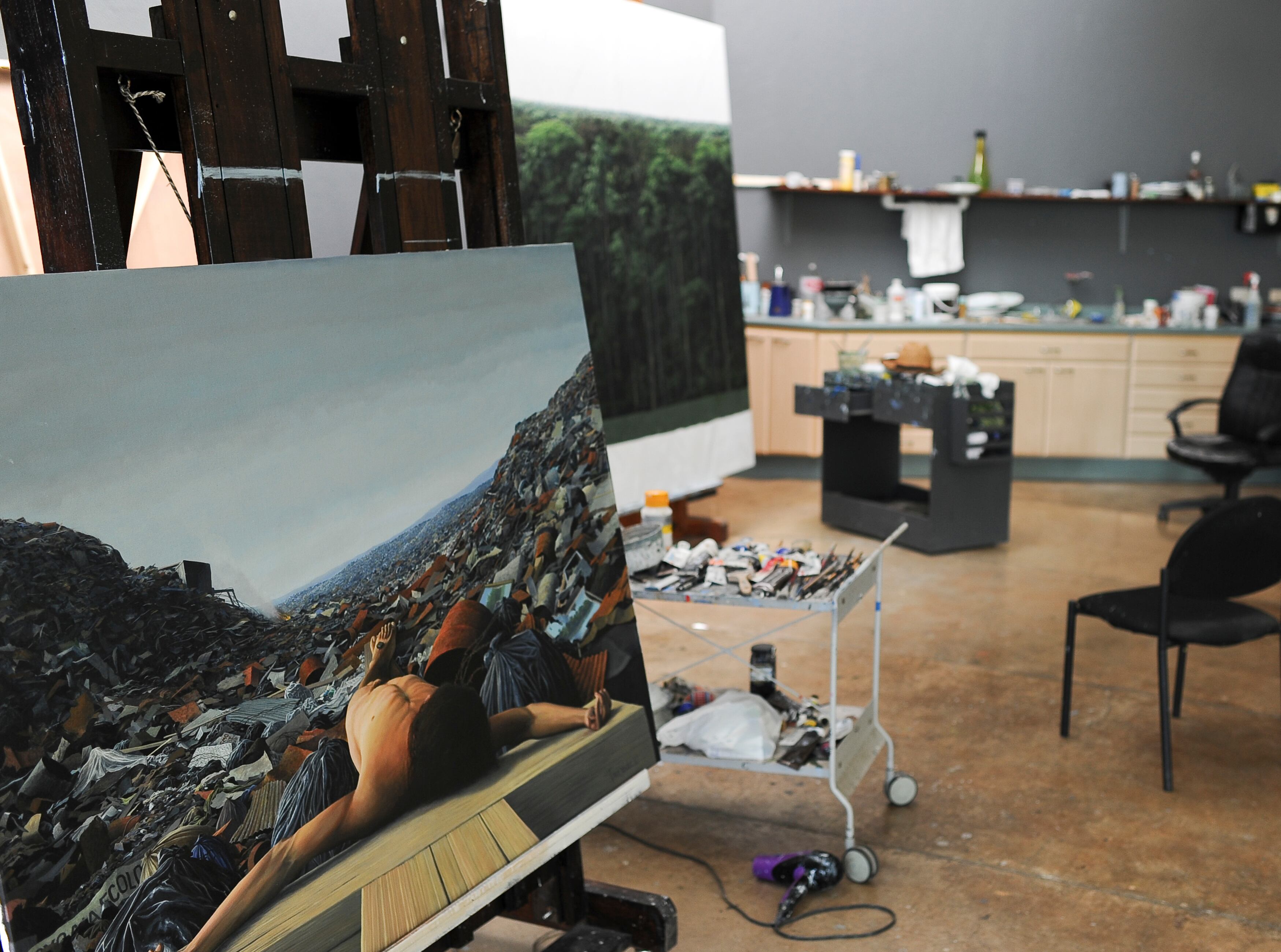 A Tomás Sánchez hay que entenderlo como dualidad. Basura y natura son dos complementarias. ‘Si tú me pones a pintar paisajes nada más, exploto. Si me pones a pintar basureros nada más, exploto. Al mismo tiempo, me doy cuenta de que los dos temas son paisajes. La relación ideal con la naturaleza, que el hombre contempla, disfruta y la adora, y otra relación en la que el hombre recibe el desastre, el fruto, el detrito de todo lo que consume, a veces innecesariamente’, asegura.