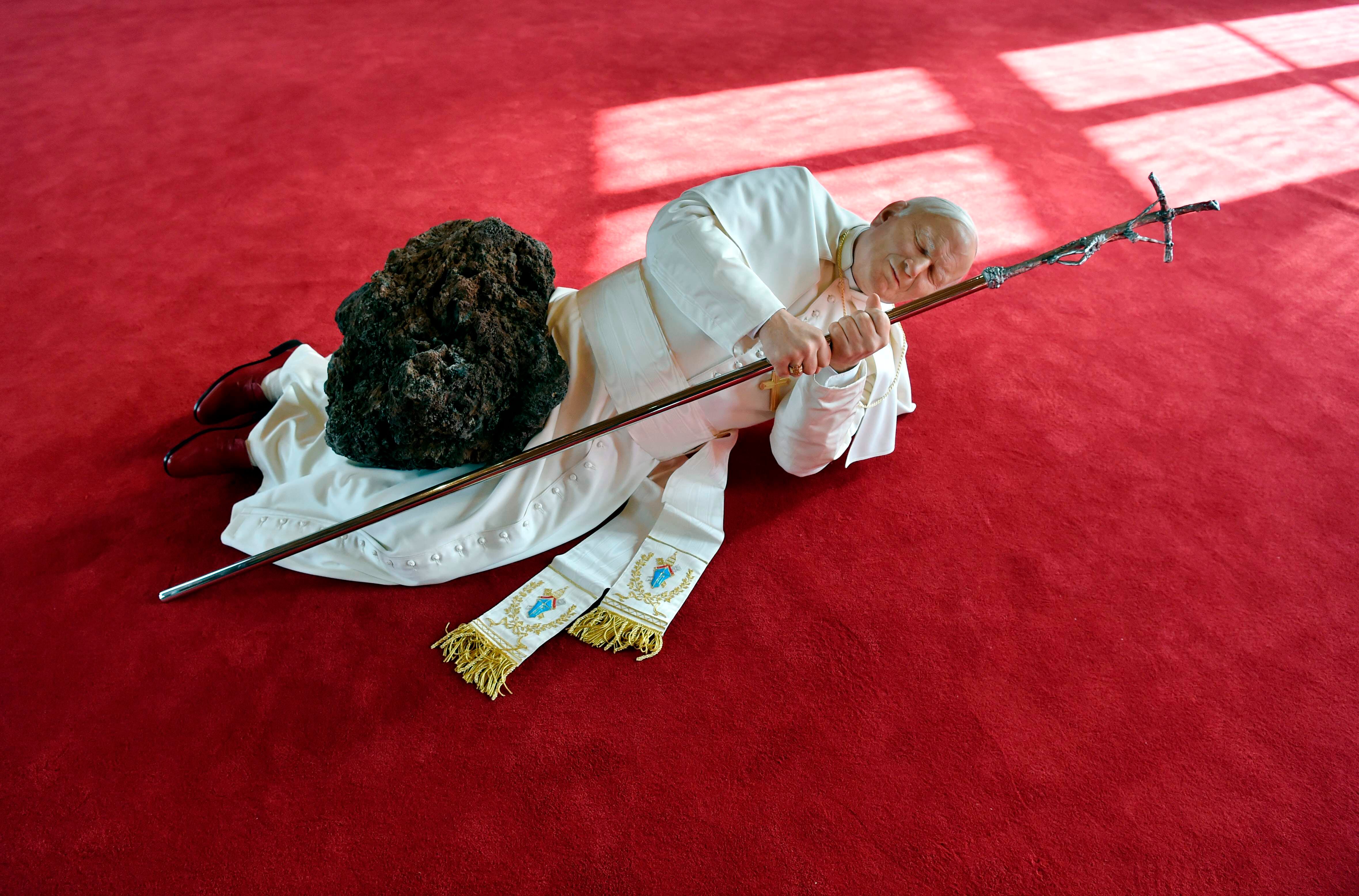 En 1999, el artista italiano Maurizio Cattelan había causado revuelo en Polonia por su trabajo expuesto en la Bienal de Venecia: una estatua del papa Juan Pablo II en cera, aplastado por un meteorito.