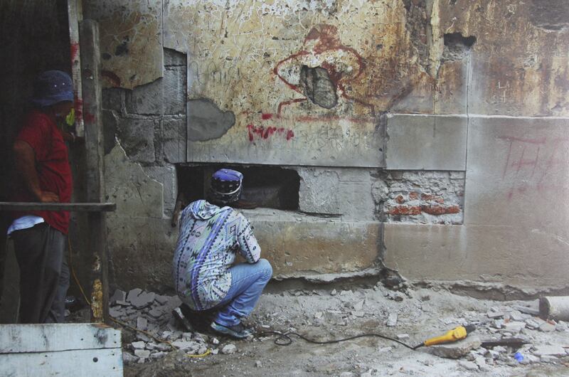 Por otra parte observamos una fotografía en la cual se desdibujan las fronteras entre ideologías. La imagen documenta una parte del proyecto Auras of War , del nicaragüense Ernesto Salmerón, y muestra el proceso de extracción de una imagen de Augusto César Sandino que se encontraba en un muro de Granada (Nicaragua). Luego, el trozo de pared es transportado en un camión de la antigua Alemania Democrática llamado “El gringo” por dos veteranos: un sandinista y un contra.