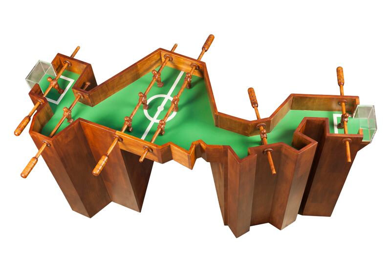 Reflexión. Centroamérica nos habla de su historia conforme los ojos se pasean por la galería. Si la mirada se detiene en el centro de la sala, se encuentra con Mejengo , un futbolín con la forma del mapa de Centroamérica hecho por el costarricense Joaquín R. del Paso. “Es una escultura interactiva: está diseñada para ser utilizada, no solo para ser contemplada. En la pieza trato los conceptos de geografía, nacionalidad y territorio. Además, comento el futbol, que es la ‘religión emocional’ del pueblo”, explica el artista.
