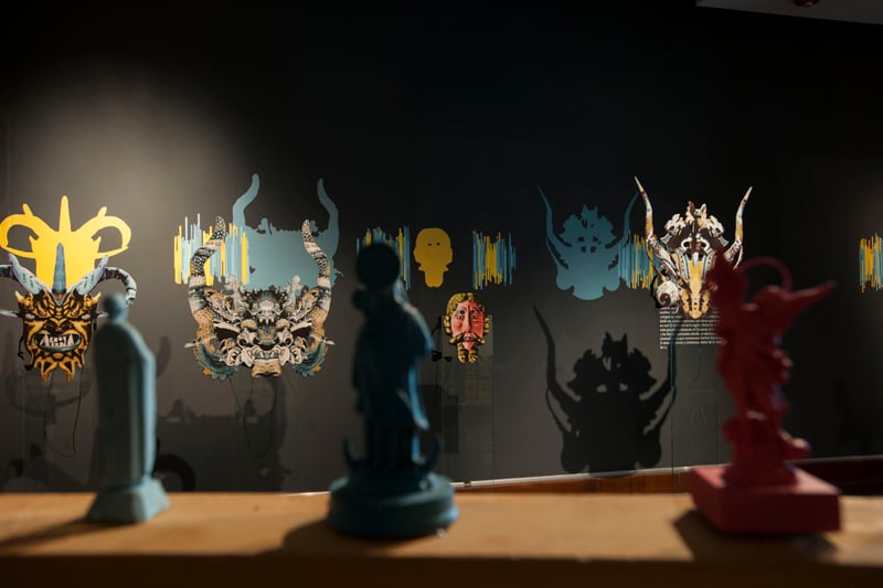 Tres colores. La exposición se ofrece como un paseo visual y auditivo de los siglos XVI al XX. Hay textos, fotos, carteles, videos, muñecos, máscaras e instalaciones, y muchos instrumentos musicales que pueden tocarse en los dos sentidos.