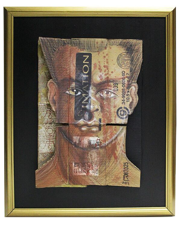 En este caso particular, la consistencia de las cajas de cartón ofrece un universo de posibilidades de manipulación para representar la figura humana, uno de los motivos predilectos del artista. Su abordaje comprende un juego entre lo planimétrico y lo tridimensional, así como un comentario incisivo acerca de nuestra cultura.