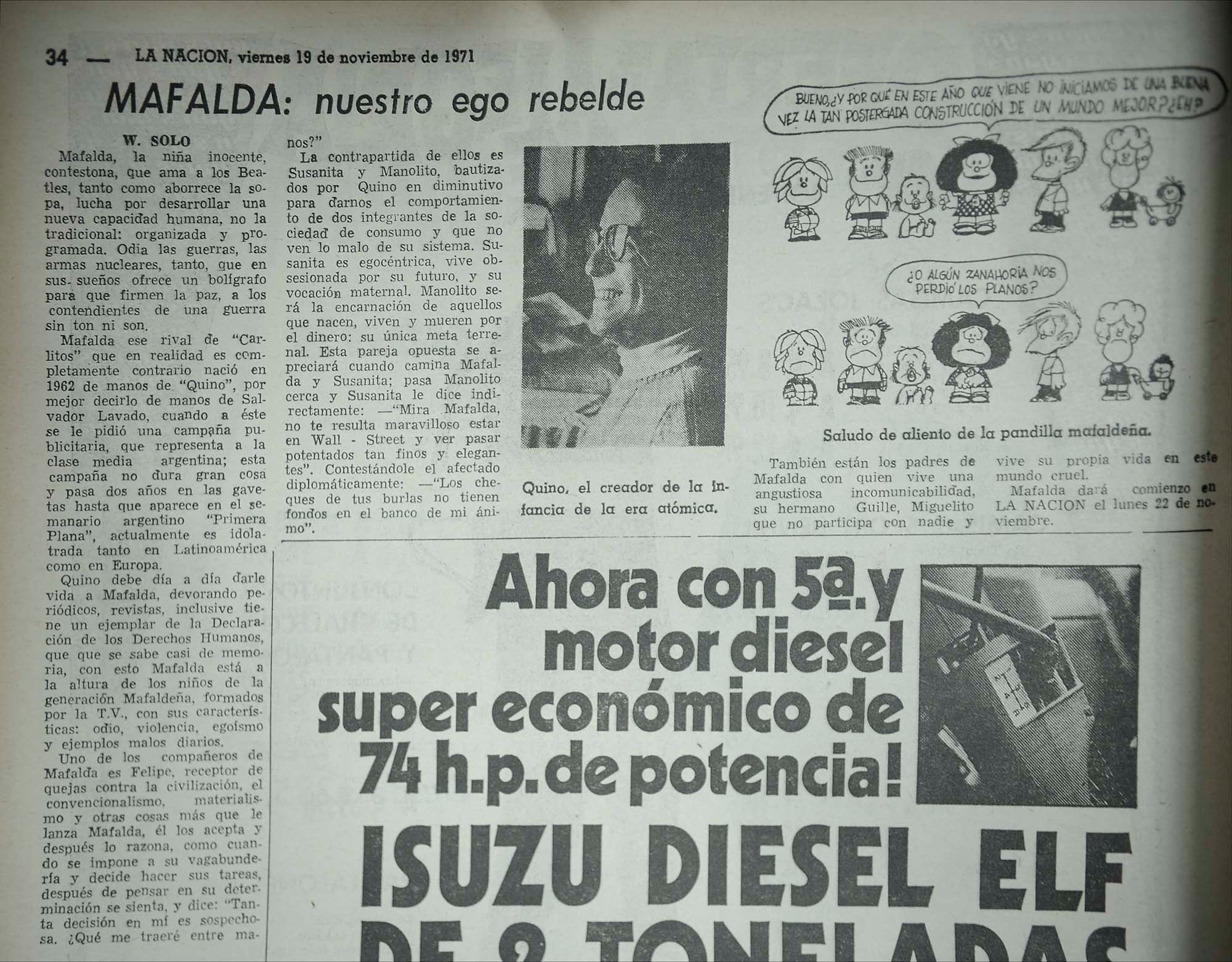 La llegada de Mafalda fue precedida por anuncios publicados en ediciones de la semana anterior del diario. El 19 de noviembre fue publicado el artículo Mafalda: nuestro ego rebelde, firmado por W. Solo.