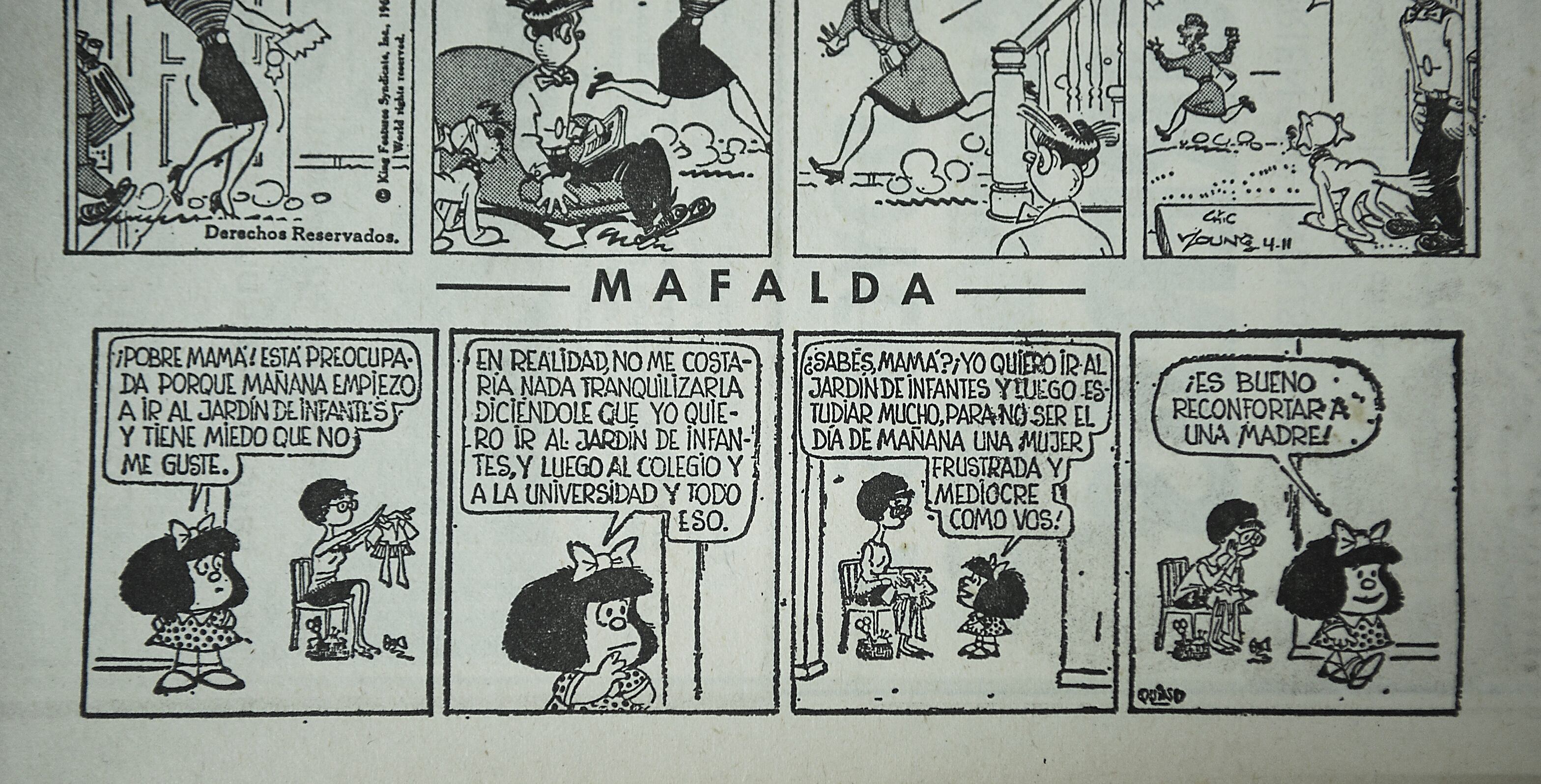 El debut de la creación del argentino Quino en Costa Rica fue el lunes 22 de noviembre de 1971 en La Nación, en la esquina inferior derecha de la página dedicada a las tiras cómicas.