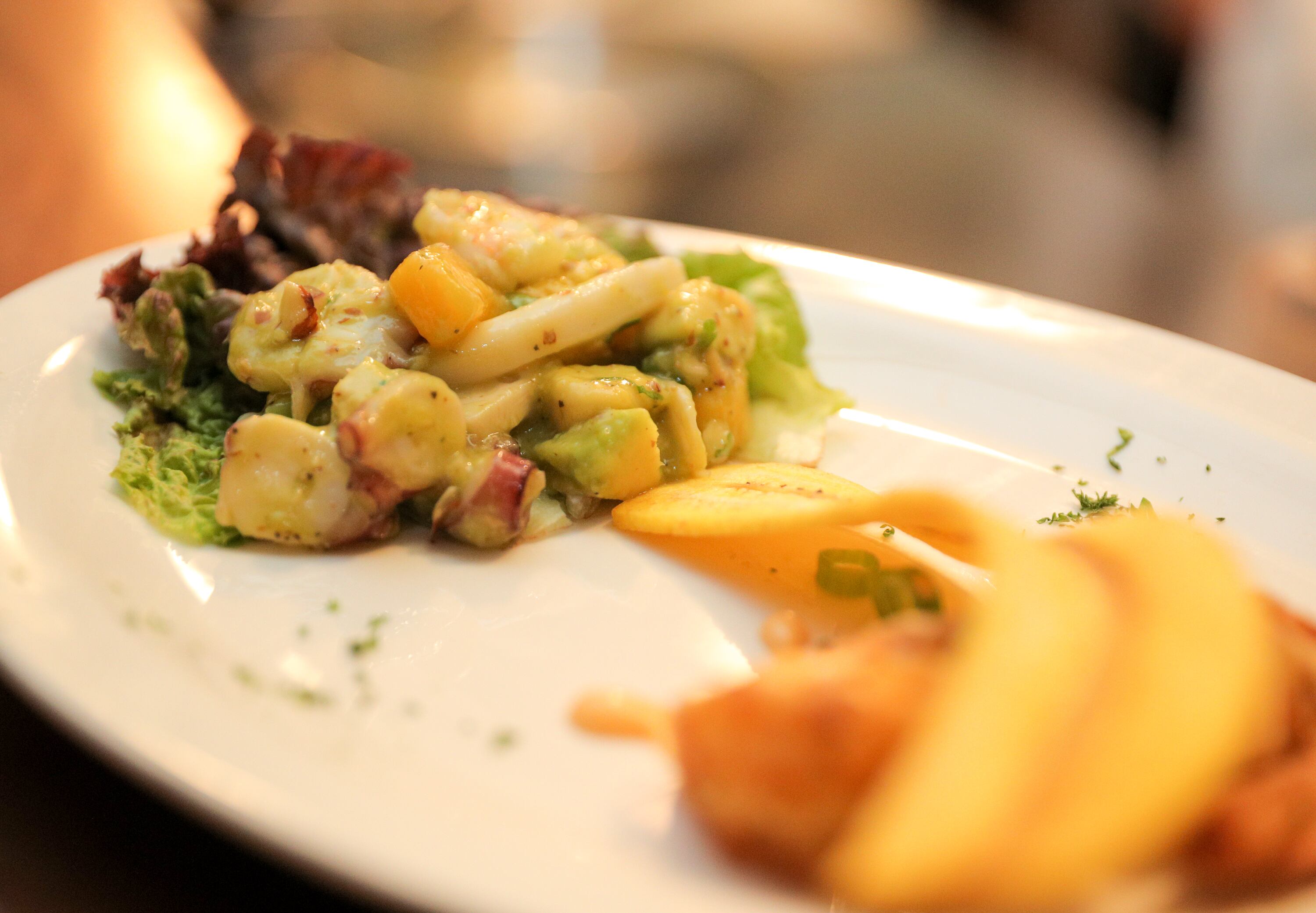 Seguido de los wow, wow, Gabriella’s nos presenta el ceviche de maracuyá. Este reúne al calamar, pulpo y camarón, acompañados por aguacate, almendras y limón. Esta receta no es suya como si lo son los camarones wow, wow; sin embargo, admiten que es un obsequio de amigos peruanos.