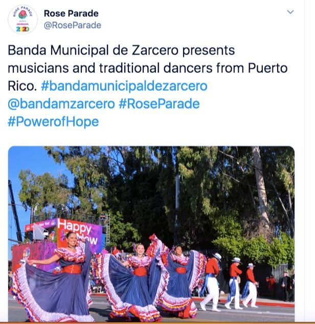 La Banda Municipal de Zarcero marchó el primer día del 2020 en la posición 39 en el tradicional Desfile de las Rosas en Pasadena (California), entre 88 conjuntos que recorrieron el Colorado Boulevard y más de 800.000 espectadores apostados en graderías a ambos lados de esa arteria vial.