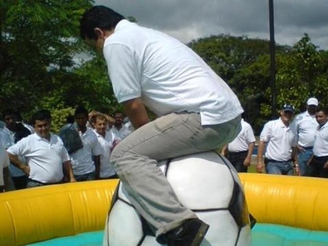 El balón mecánico es nada menos que la versión futbolística del famoso toro mecánico, y está bautizada como la Bola Loca. Esta es una de las principales atracciones del evento y se encargará de “revolcar” a los intrépidos aficionados que decidan montarla.
