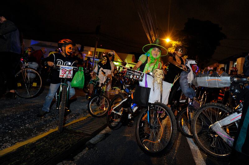 Entre cascos y chalecos, las bicicletas también se vistieron para la ocasión y no faltaron las telarañas y las calaveras.