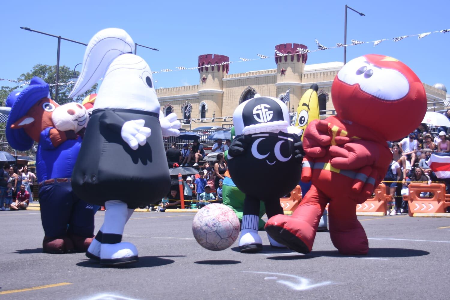 Mientras tanto, Torito (Super Compro) intenta correr de un lado a otro, pero parece que su cabeza se va a quedar perdida en el camino. Nanito (Corbana) podría estar mareado y no puede espantar carrera, pero lo intenta. Guaca (La Guacamaya), por su parte, aprovecha cada momento para sacar sus “pasos prohibidos”: baila de pie, baila acostada en el asfalto, no importa que su traje parece que se va a desinflar y se hace para un lado y para el otro con gran soltura. Incluso, baila hasta sin música.