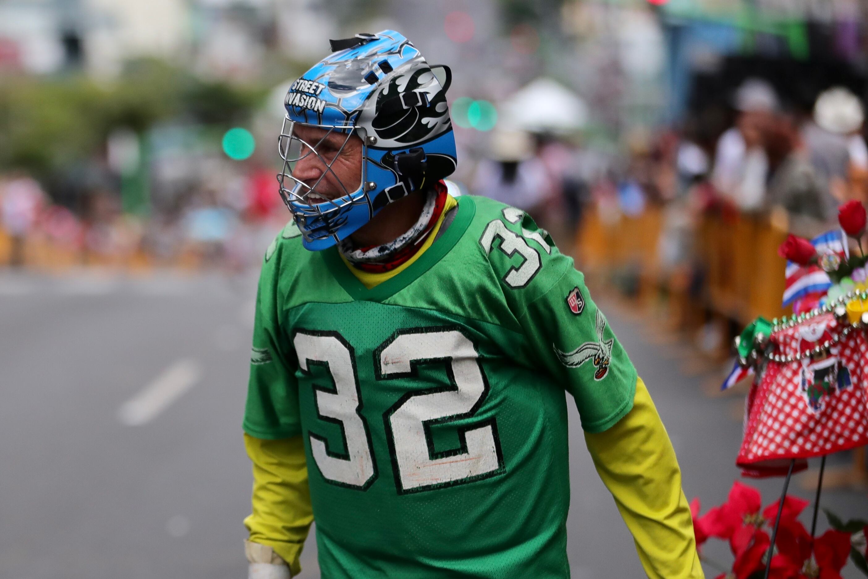 Un hombre vestido con una camiseta de fútbol americano de color verde y un casco para jugar ese deporte fue una de las figuras más llamativas de este Tope Nacional 2022. Era Carlos Arredondo, el famoso Gringo, aquel torero improvisado que durante muchos años hizo las delicias del público en las corridas de toros de Zapote.