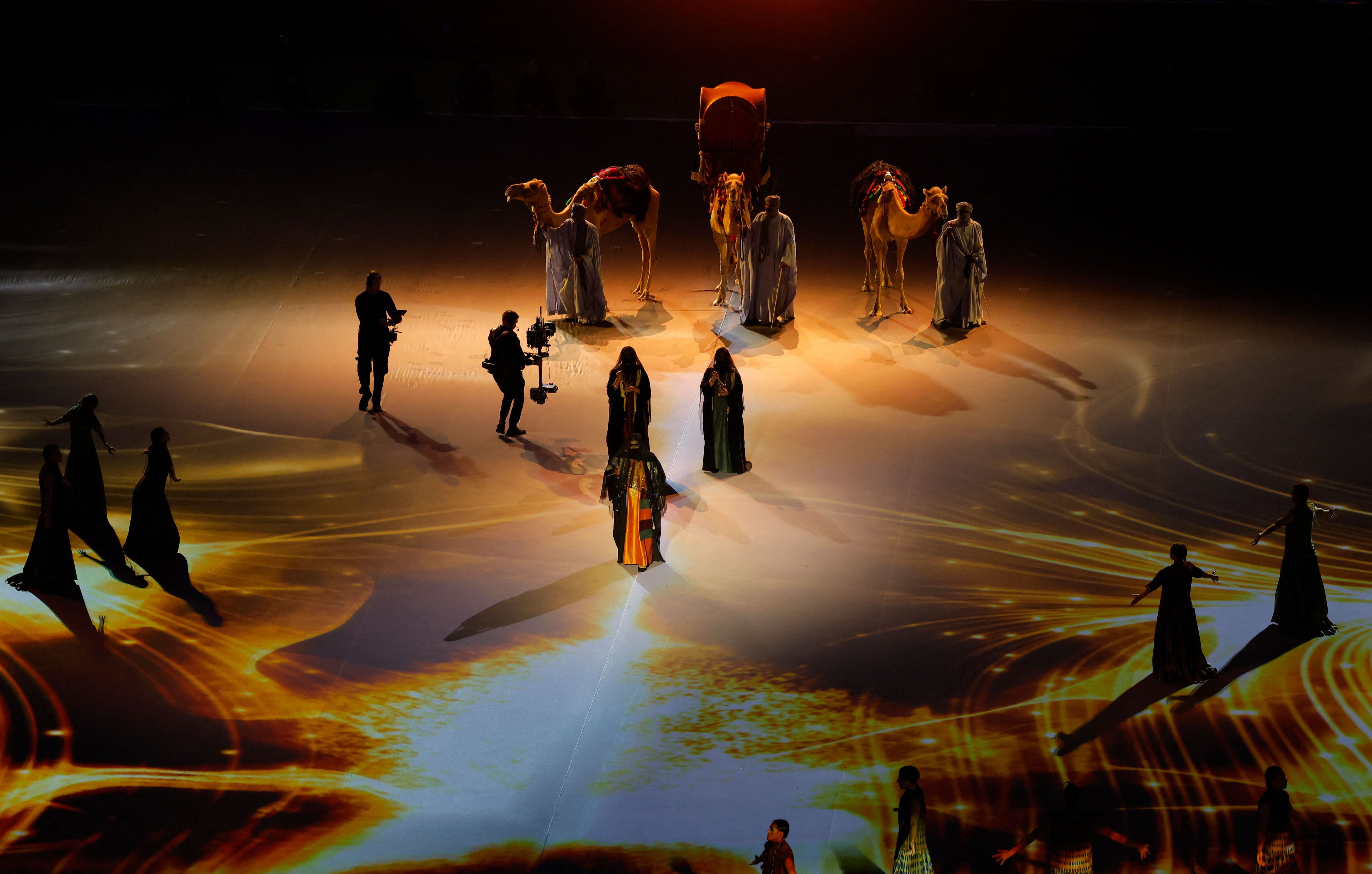 9 a. m. La superestrella coreana Jung Kook, de la banda BTS, apareció en escena cantando el tema Dreamers, lanzado especialmente para conmemorar el comienzo del Mundial de Qatar 2022. A él se unió el artista catarí Fahad Al- Kubaisi.