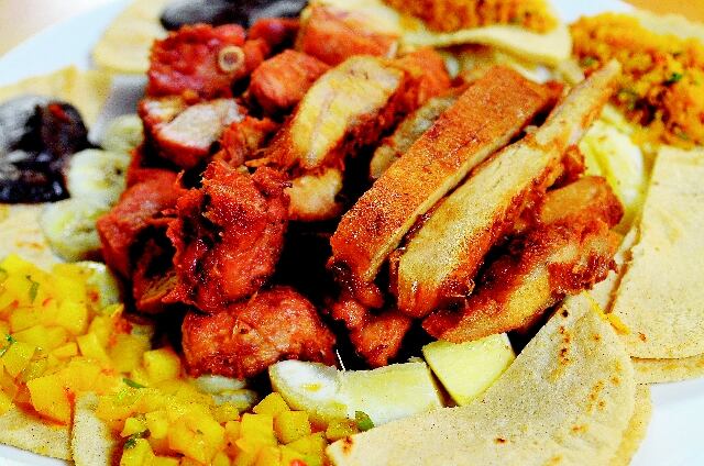Según Mora, la yuca, el guineo o el plátano verde sancochados (la yuca también frita), la tortilla casera y los gallos de picadillo son los mejores platillos para acompañar al chicharrón, sin olvidar el limón tipo mesino o naranjilla.