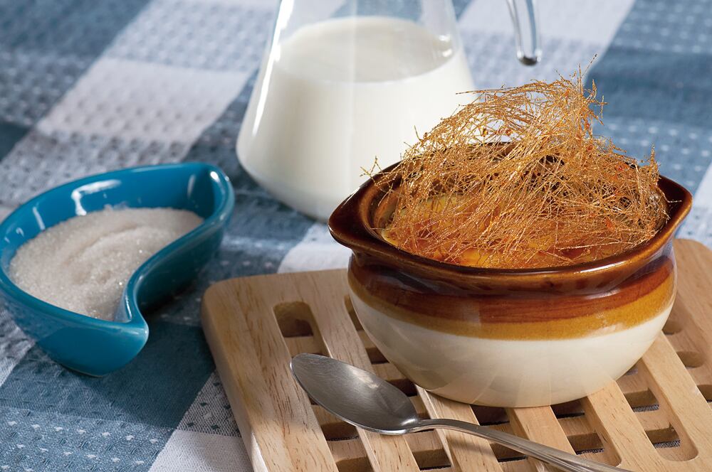 3. Incorpore la crema dulce con la leche de almendras caliente a las yemas con el azúcar. Bata hasta que se mezcle bien, pase por un colador y deje reposar por 10 minutos. Retire la espuma.