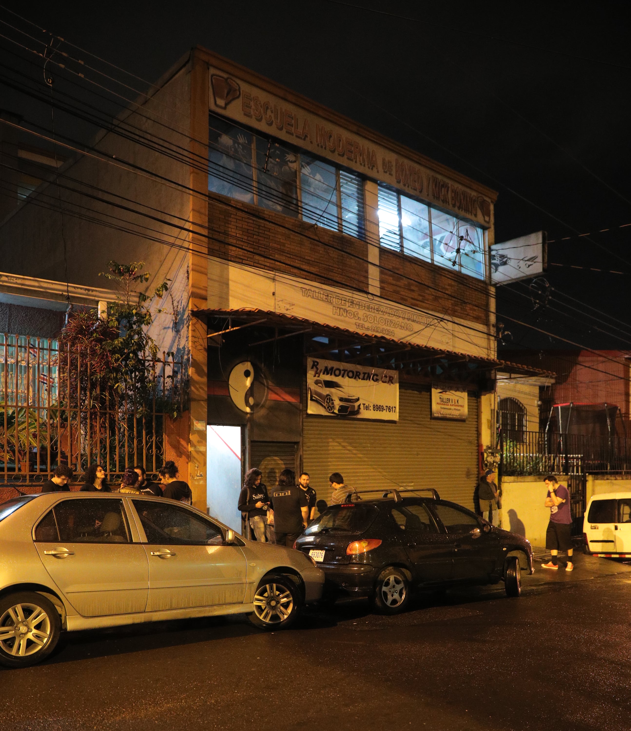 El bastión de los luchadores está camuflado en el segundo piso de uno de los tantos talleres de automoviles y motos que hay Desamparados. En la parte superior del edificio hay un destramado letrero que reza: Escuela Moderna de Boxeo y Kick Boxing. Todo el local da la impresión que todo tiempo pasado fue mejor.