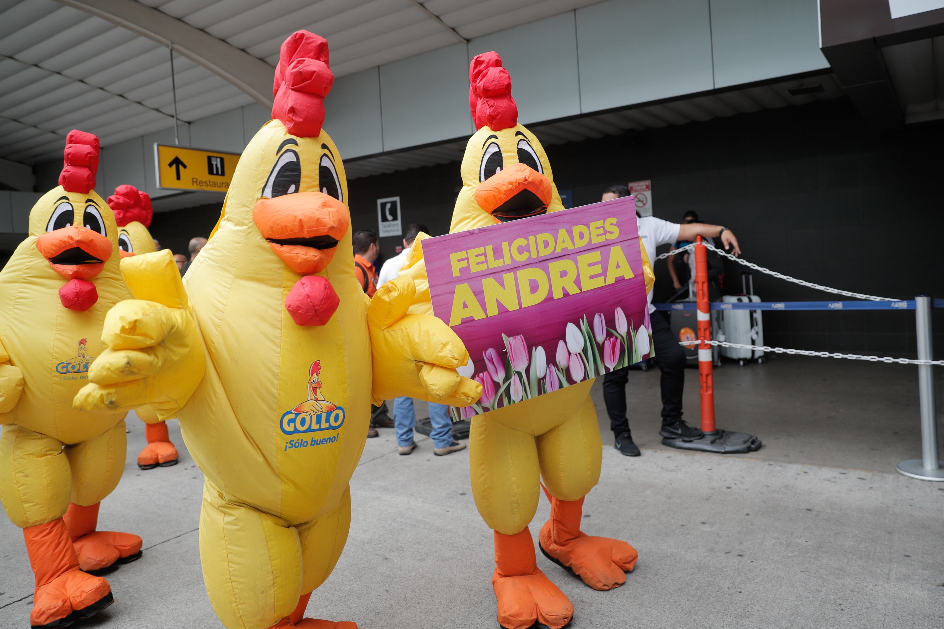 Otro detalle que nos hizo arquear la ceja fue la presencia de la marca Gollo, en las afueras del aeropuerto este viernes, con un montón de disfraces de pollos esperando a Andrea. A muchos en redes les pareció que se estaban aprovechando de la humidad de las Vargas, nosotros lo vemos como una oportunidad dorada de mercadeo y no dudamos que esa será una de las primeras marcas en apoyar a una de las ya jóvenes leyendas del deporte costarricense, pero en este caso no hay dos sin tres y doña Dixiana y Noelia se van en ese mismo cabús: hay que apoyarlas al máximo, desde las entidades oficiales hasta la empresa privada y las marcas millonarias.