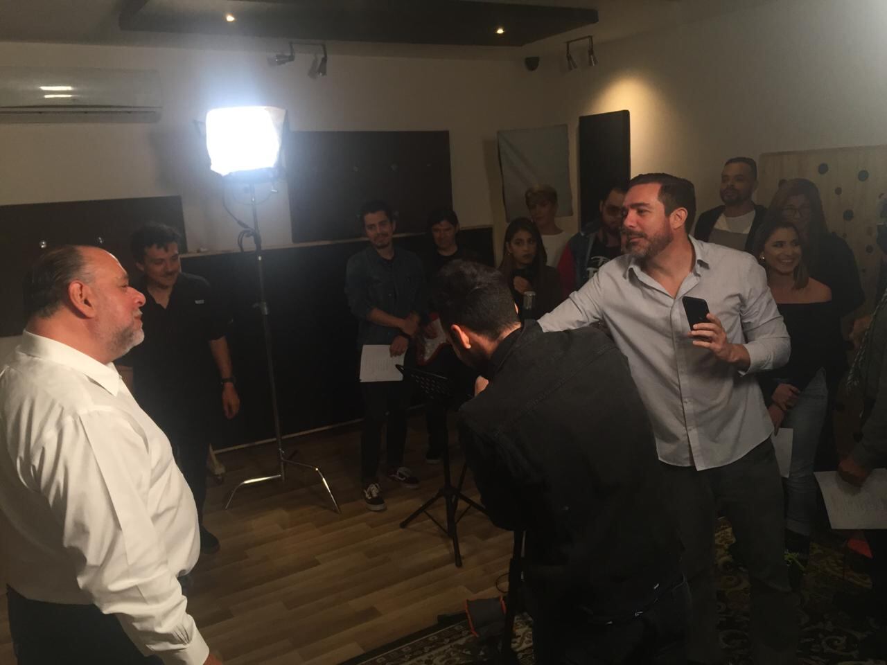 Todo vino de menos a más; primero se metió en el personaje de Eloy Chavarría (cuyo primo y socio es el vivo retrato, literalmente, de German Chavarría) supuesto fundador de la empresa, quien va contando cómo, durante la quiebra del Banco Anglo, la empresa que con tanto ahínco habían levantado él y su familia se había ido en la tira. Luego se percata –y así lo comunica con esa “euforia” tan a la manera de don Eloy– de que un grupo de músicos nacionales, anonadados por la inminente extinción de tales papas, decidieron unirse para componer un jingle y salvar a la pequeña empresa.