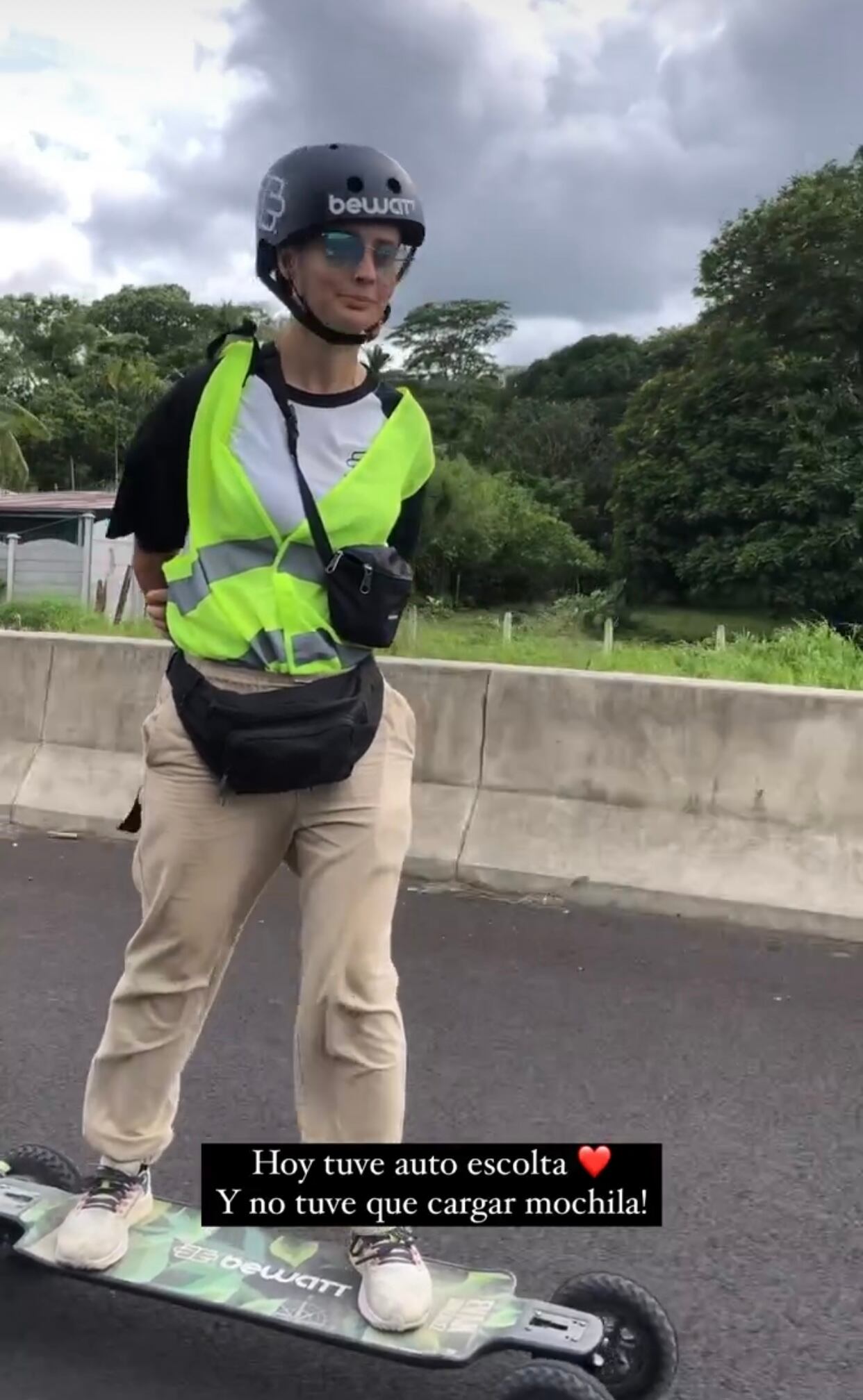 “Gente de Costa Rica, estoy viajando de Panamá hasta Nicaragua cruzando su hermoso país con este skyboard eléctrico, acabo de dejar Puerto Viejo, voy para Cahuita y así hasta el Norte hasta llegar a Nicaragua. Si me ven en la ruta nos saludamos. Si van en auto no me toquen la bocina porque me asusto y me caigo”, explicó en uno de sus primeros videos.
