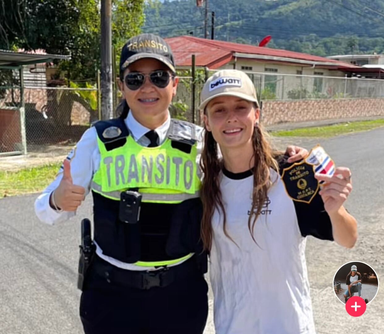 “La policía de tránsito de Costa Rica me contactó por mi viaje en Costa Rica en patineta y vinieron hasta el hospedaje donde me estaba quedando. Pensé que la policía no me iba a dejar continuar el viaje, pero vinieron a regalarme dos escudos, un helado de coco y dos aguas”, contó emocionada.