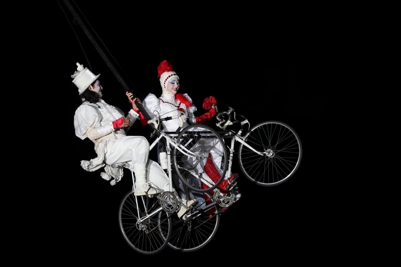 Un hechizo volador. El espectáculo más hipnotizante de la noche también fue el más inesperado: la compañía belga Teatro TOL inició Pedaleando hacia el cielo desde la misma tarima del tango.
